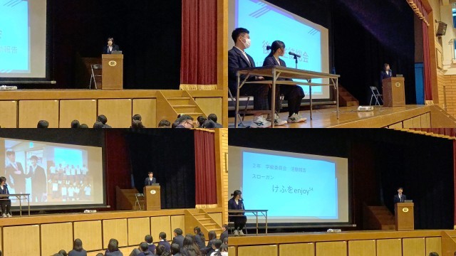 先週5日(木)、令和7年度後期生徒会による、生徒総会が行われました。