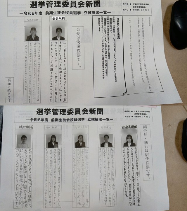 【3月23日】令和8年度前期生徒会役員が決まりました。