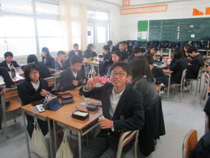 給食の時間の終わり頃の様子です。2年生です。3枚目は、食器をまとめていたのでカメラを向けると、『違います。』と一人で全部食べたのではないと手を振りながら話しています。