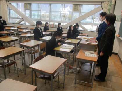 本日、臨時休校の中、感染予防に配慮しつつ、府立高校一般選抜のための出願を行いました。出願を終えた生徒は学校に戻り報告をしています。