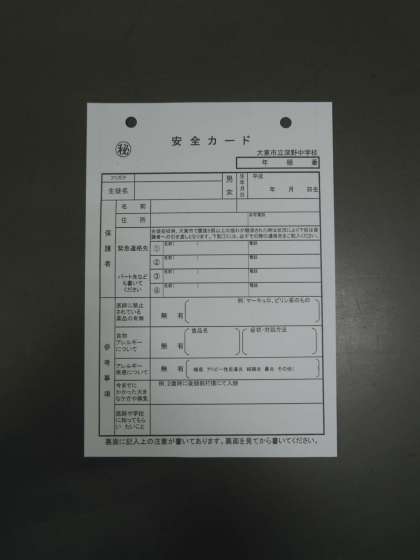 ・安全カード(写真1枚目)