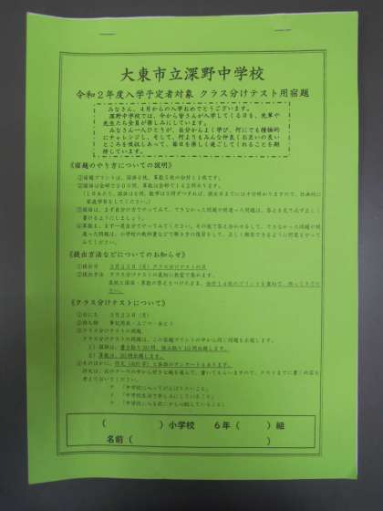 ・クラス分けテスト用宿題(写真2枚目)
