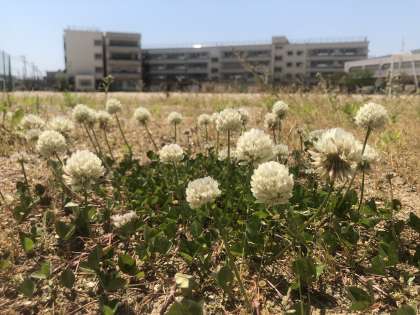 花名の由来は、1846年にガラス製品がオランダから贈られるとき、ガラス製品が割れてしまわないようにクッション材として、クローバーが詰められていました。そこから「詰め草(ツメクサ)」と呼ばれるようになり、白い花を咲かせるので「シロツメクサ」となったそうです。
