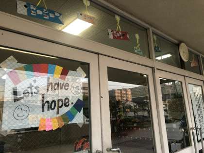 深野中学校では、『みなさんの健やかな成長とたくさんの幸せがありますように』と願いを込めて、鯉のぼりをあげました。