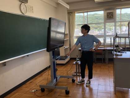 理科のY先生が、授業を行っています。大東市教育委員会【公式】ちゃんねる用に作成してくださっています。編集作業等してからアップされることになります。楽しみにしていてください。