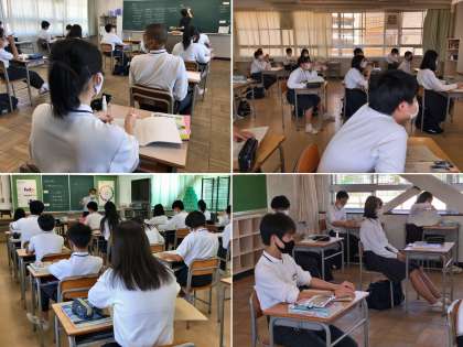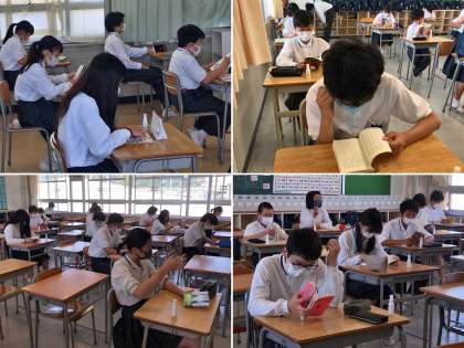 午後の授業の様子です。読書も平常通り行われ、落ち着いて取り組むことができています。まだ読みたい本が見つかっていない人もいるようですが、図書館前に行ってみてください。また先生たちの『おすすめ図書』も見ていただければと思います。