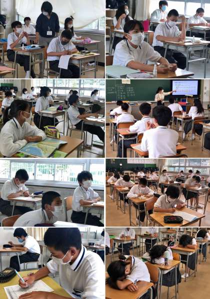 (注意!)写真の一番下右…寝ているわけではありません。授業の中での仕掛けです。