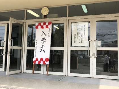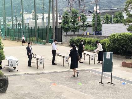 1年生の登校時間を終え、現在保護者の方々の受付を順次行っています。9時40分より、開式の予定です。