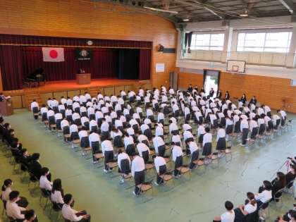 こんにちは。今日の午前中は「第50回 入学式」でした。その様子の写真をホームページにアップしていきます。式中の全体の写真です。