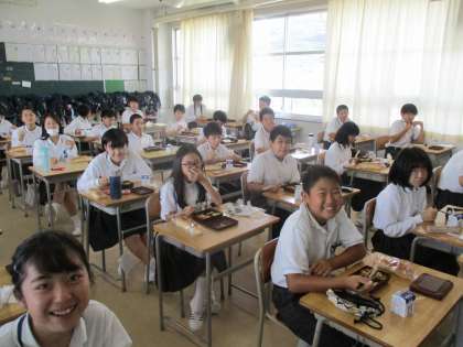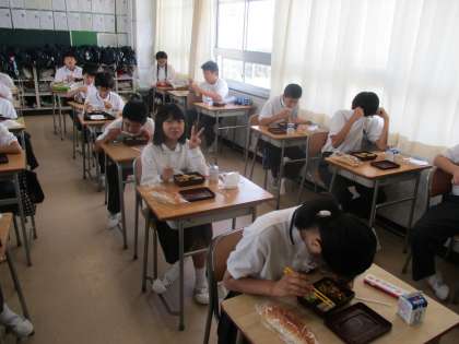1年生の食事風景です。感染症対策のため、自分の昼食は自分で取るようにしていますが、もうだいぶ慣れてきました。