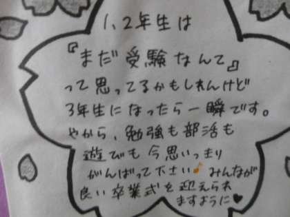深野中の3年間を経験した先輩から後輩への最後のエールです。