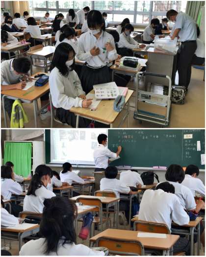 3時間目の2年生、1組…理科、2組…数学、3組…英語、4組…社会の授業です。
