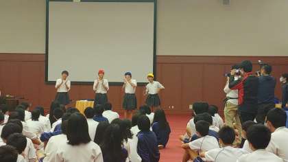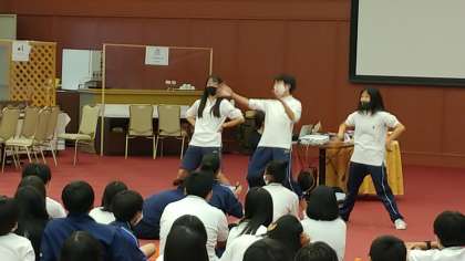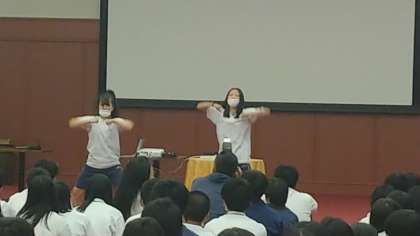 学年レクが始まりました。委員が知恵を出し合ってメニューを考えたようです。盛り上がってます。