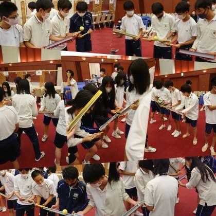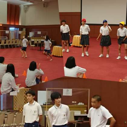 学年レクリエーションを行いました。はじめは、ダンスや漫才で場を盛り上げてくれました。その後は、パイプを使ったボール転がしやジェスチャーゲーム、鼻歌イントロクイズなど、様々なレクリエーションをして、楽しみました。準備をしてくれた修学旅行実行委員さん、ありがとうございました!