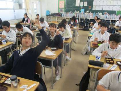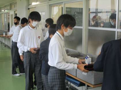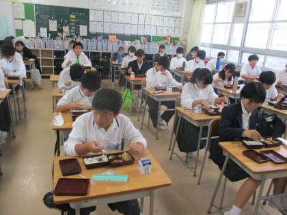 昼食時の様子です。1枚目は各自で昼食をとる様子です。コロナ感染症対策で始めた方法ですが、もう当たり前になっています。