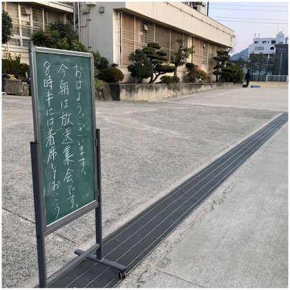 今日の生徒集会は、放送による集会となりました。大阪府に新型コロナウイルス感染症警戒信号『赤信号』の点灯にともない、密を避けるために全校を体育館に集合することを避けました。