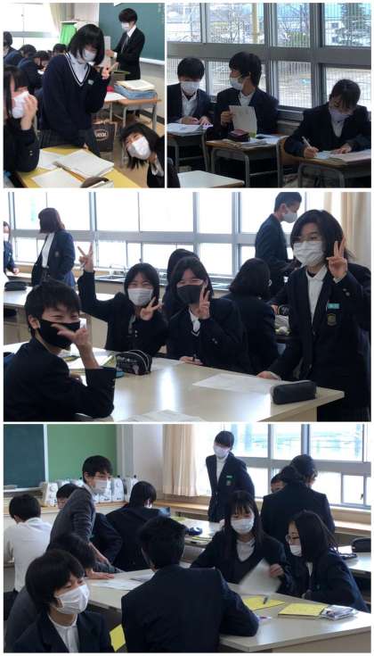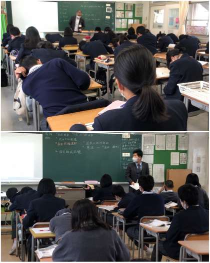 (写真上から)4組…国語、2組…家庭(授業が終わりの時間帯でした…)、1組…英語、3組…社会です。