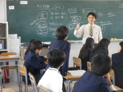 2年5組の生徒を対象に、指導講師の先生に模範授業を行っていただき、全教員が参観しました。校区小学校の先生の参加もありました。