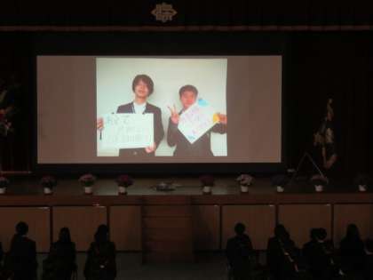 会場の広さから歌えない代わりに事前に収録した合唱の動画では、一人ひとりの思いを綴ったメッセージを持った生徒一人ひとりがスクリーンに映し出されました。