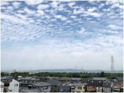今朝の空は、『うろこ雲』が北側にできていました。秋の空のイメージですが、異常気象が当たり前となった今日この頃…季節外れのうろこ雲もあるのかな、と思います。