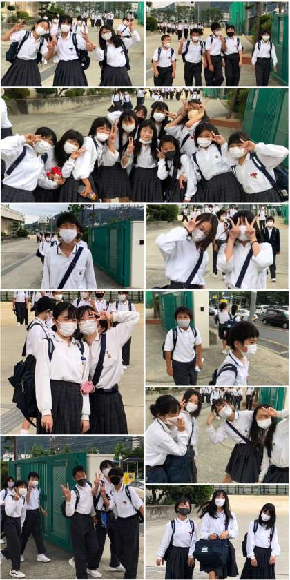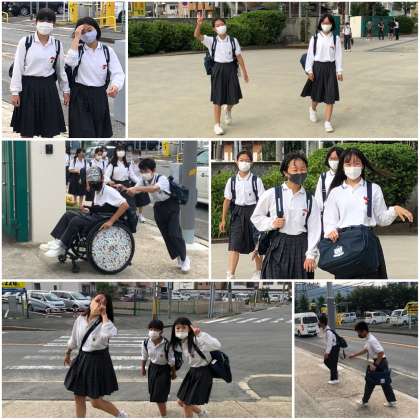 朝、3年生が修学旅行に出発したのと、ちょうど入れ替わるような形で1,2年生の登校の時間となりました。