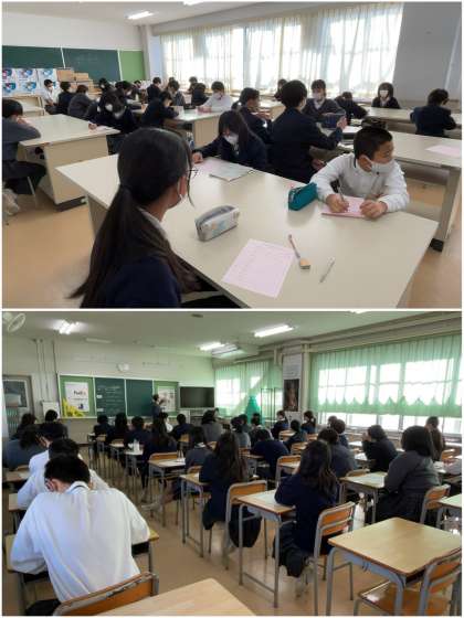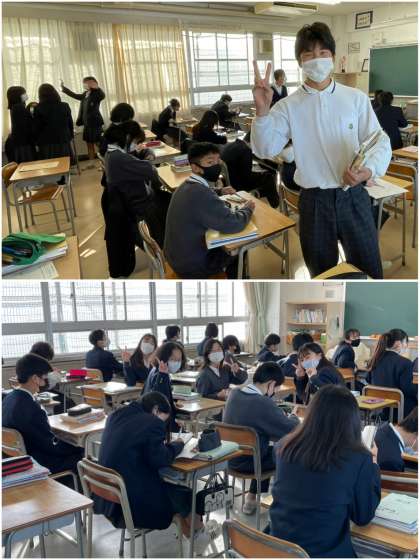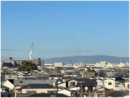 1年生(4階)のフロアから見えるどこかの工場からの煙(水蒸気)が真上に立ち上っています。