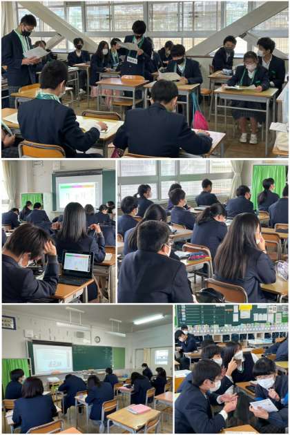 1組…社会(模擬裁判中)、2組…国語、3組…英語、4組…数学です。