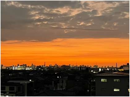 西の空の茜色がとても美しです。12月は日没も早く、あっという間に暗くなってしまいます。