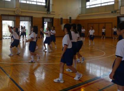 男子がグランドでサッカー、女子は体育館でドッジボール。