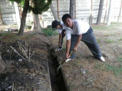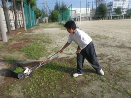 けが等で練習を見学していたラグビー部員が、芝刈りや側溝の掃除をしてくれました。ありがとう!