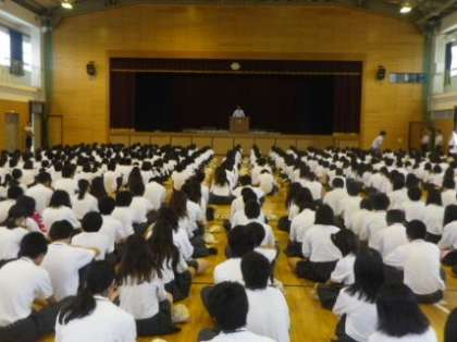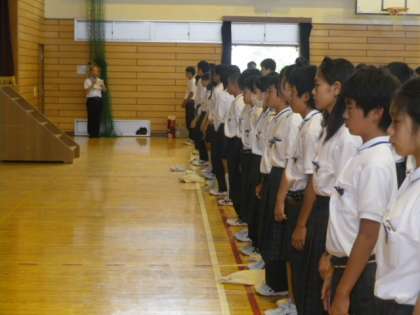 写真上・中:生徒たちはしっかりした態度で終業式に臨んでくれました。