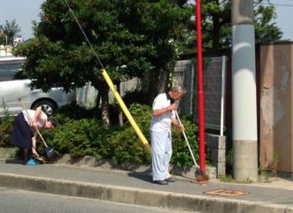 誰かな? と思って行ってみると、近隣にお住まいのご老人がお二人、暑い日射しの中を、額に汗しながら校門付近を掃除してくださっています。