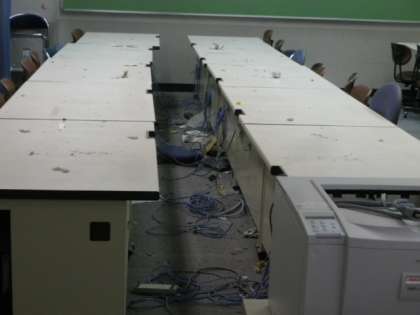 この夏休みの間に、コンピュータ教室のパソコンのリプレースが行われ、全てのコンピュータがタブレット型になりました。