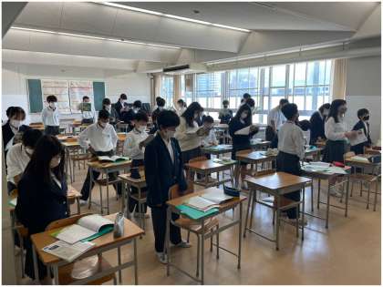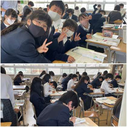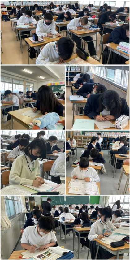 2時間目、1年生のフロア(4F)にお邪魔しました。テスト前ということもあり、テスト直前の確認(復習)をしているクラスもあります。