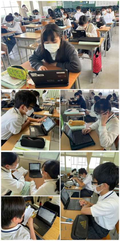 個人思考の時間あり、ペア交流で確認する時間あり、タブレットを活用して学力の定着をめざします。