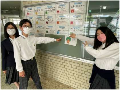 生徒会役員のみなさんが、正面玄関の掲示板に新たに、深野中学校がめざす(SDGs)17の達成目標を出してくださいました。全校生徒のみなさんが少しずつ協力してくれれば、大きな力になることでしょう。