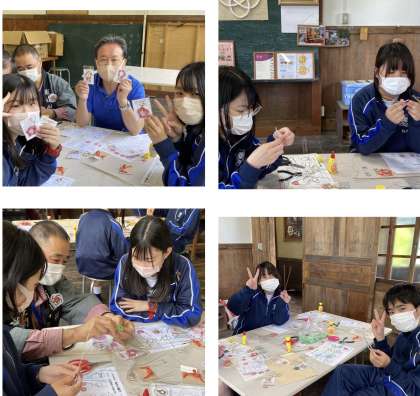 全国シェア70%を誇る長野県飯田市の水引き職人から水引きの作り方をレクチャーしていただいています。各自良い水引きが作成できたようです。