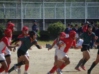 対戦相手は会場校の交野1中。1トライこそ許しましたが、深野中は4トライ1ゴールを奪う見事な勝利でした。