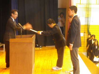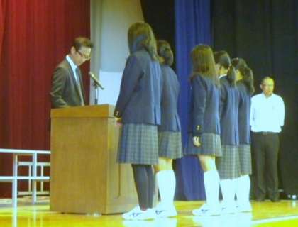 今日の集会では、10/8に実施された第44回体育大会の「学年種目」での優勝クラスを表彰しました。(写真上)