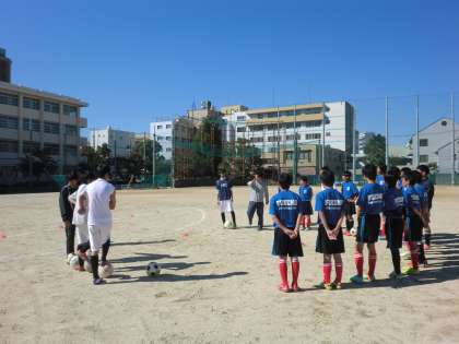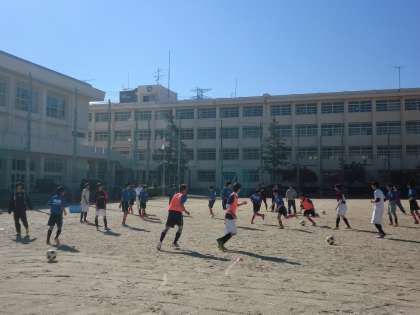 試合等において他の中学校とクラブ活動を通じて交流する機会は度々ありますが、サッカー部では地元の公立高校である野崎高校のサッカー部と合同練習を行い、交流を深めました。