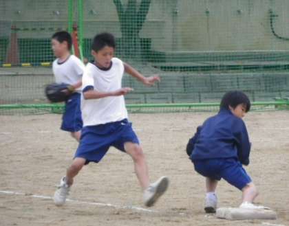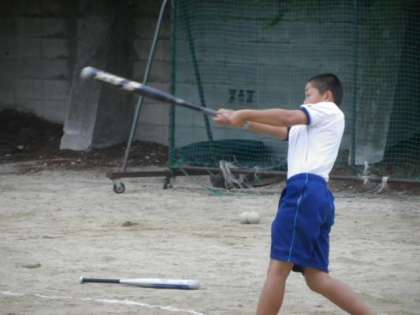 体育授業における「球技」では「ゴール型」「ネット型」「ベースボール型」の類型ごとに指導することになっており、この日の1年生男子の授業は「ベースボール型」としてソフトボールに取組んでいました。