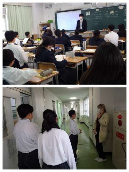 英語の授業では、会話の練習をして、ケンドラ先生と会話にチャレンジしています。