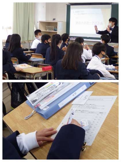数学の授業では、一人ひとりに数字のカードが配られて、「カードバトル」で楽しそうな勉強です。