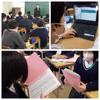 体育はグラウンドが状態が悪く使えないので、授業のアンケートなどを教室でしています。