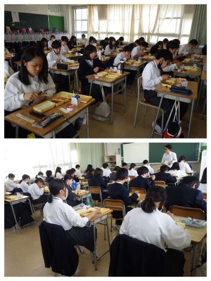 今日の給食時間は、先生のおすすめ曲の洋楽がしっとり流れていました。