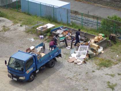 今日は、教育員会から、粗大ごみの処理に来てくださいました。