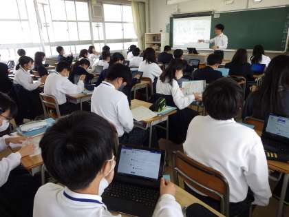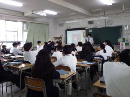 理科では、先生が子どもの頃にしたイカの解剖の話に、みんな興味津々でした。
