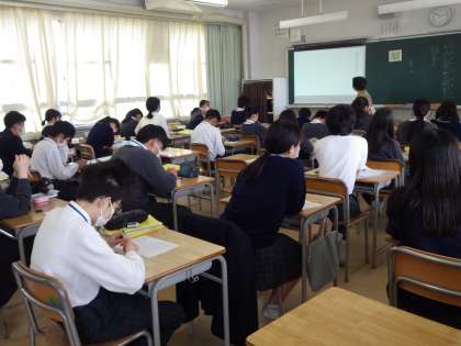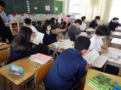 国語では文法の授業です。テスト前に習った内容の復習からしています。