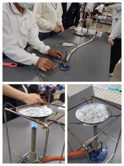 マグネシウムを過熱させて、前後の質量の変化を観察するものでした。