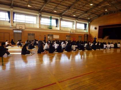 3年生は、終学活の時間、体育館で学年全員で集まっています。